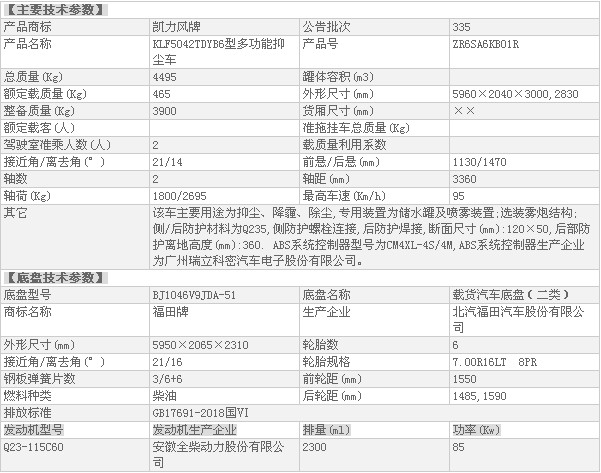 底盤配置:福田時代領航H2抑塵車專用底盤,國六標準排放,1850mm寬駕駛室、單排前翻、全柴115馬力發(fā)動機,5檔變速箱、7.00R16鋼絲胎、動轉、ABS、可調方向盤、電控熄火、氣剎、巡航、排氣制動、可調大燈、剎車自調臂。